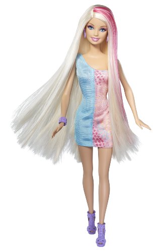 The Barbie Hairtastic Long Hair Doll has ultra-long hair in the most unexpected colors The dolls thick luxurious hair reaches below her waist and has super-glitter streaks pink purple or blue Theres also a stylish brush and fashionable outfit to help keep them looking fabulous Includes doll Read More..